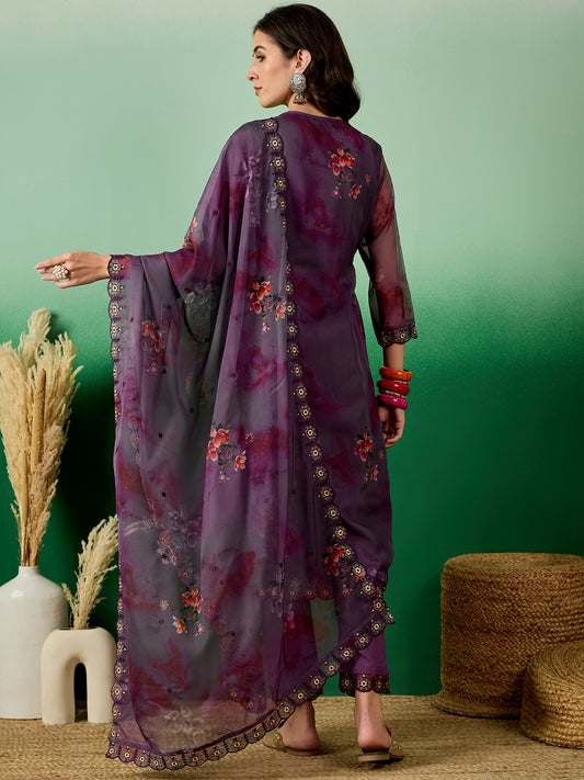 Dhiyona RV Women's Organza fabric Digital Print V Neck Kurta Set With Dupatta