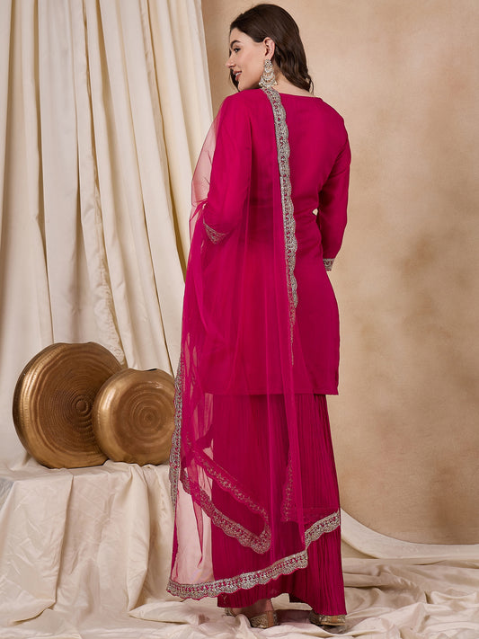 Dhiyona RV Women's Vichitra Silk Fabric Coding Sequence Embroidery Kurtaset With Dupatta.
