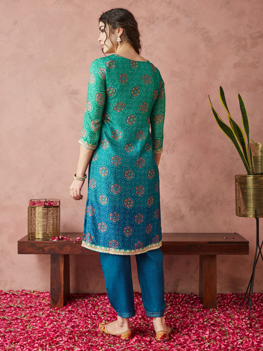Dhiyona RV Women's Exclusive Pure Silk Fabric Bandhej Print Straight Kurtaset With Dupatta.