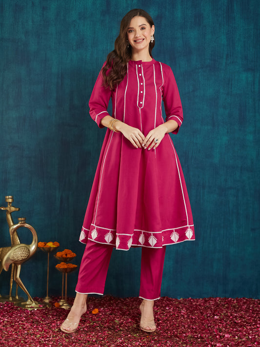 Dhiyona RV Women's Roman Silk Cross-Stitch Embroidered Flared Kurti with Pants