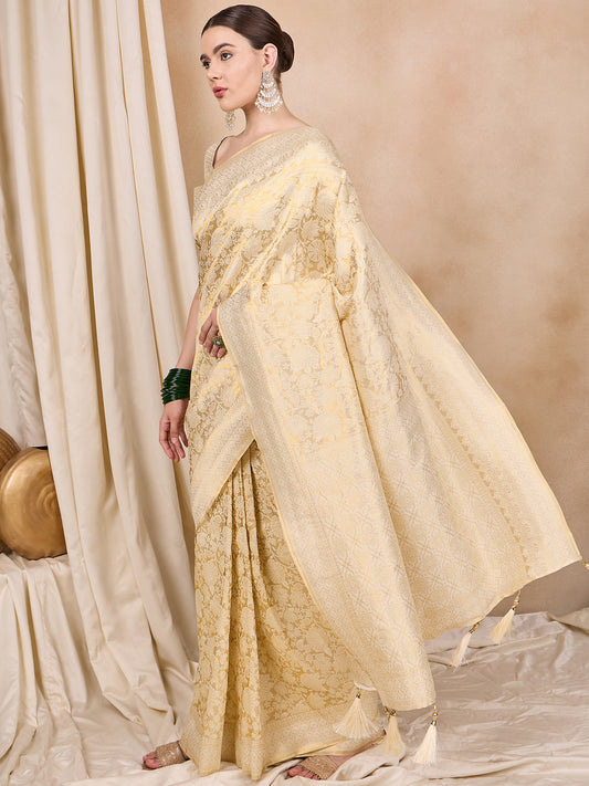 • Dhiyona RV Women's Elegant Golden Zari Woven Banarasi Silk Saree with Blouse ( KVD2163 )
