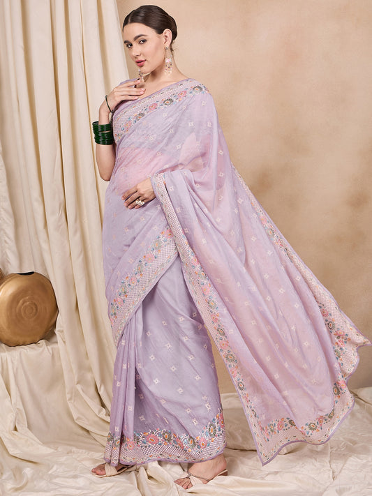Dhiyona RV Women's Silk Organza Fabric With Multi Thread Embroidery Border Saree ( KVD2152 )