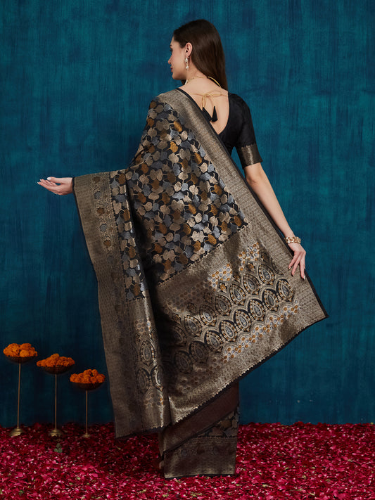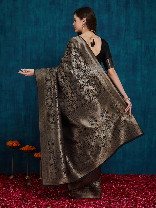 Dhiyona RV Women's Elegant Golden Zari Woven Banarasi Silk Saree with Blouse ( KVD2153 )