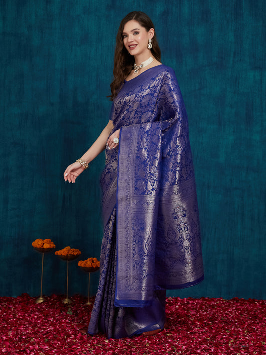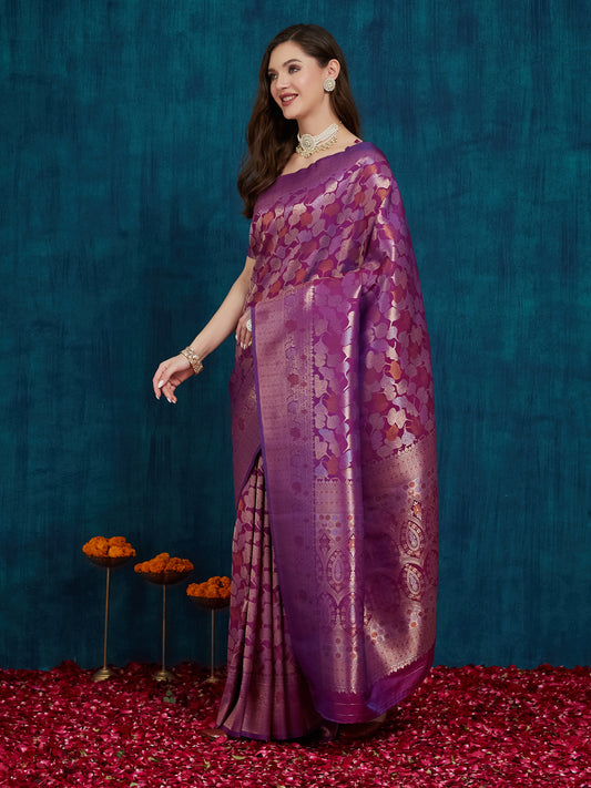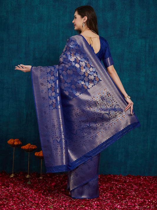 Dhiyona RV Women's Organza Zari Weaving Saree With Blouse ( KVD1705 )