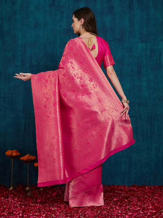 • Dhiyona RV Women's Kanjivaram Silk Woven With Golden Woven Border Saree  ( KVD2158 )