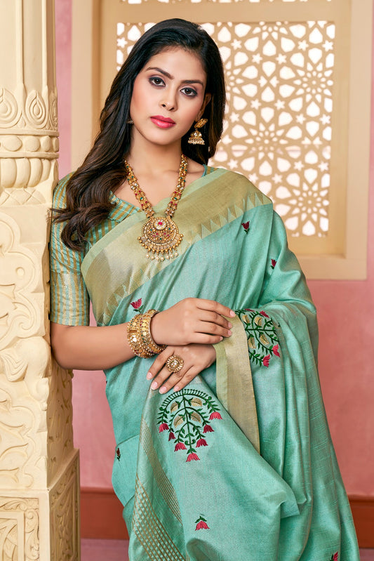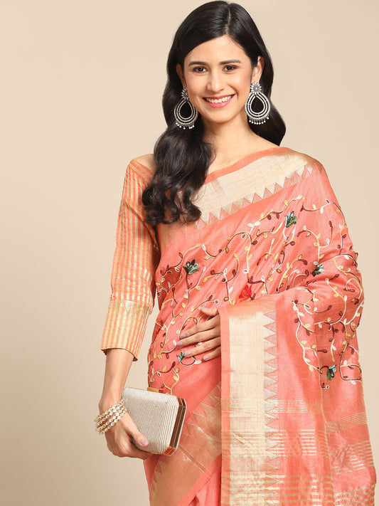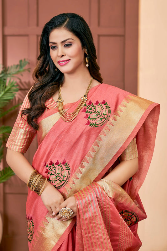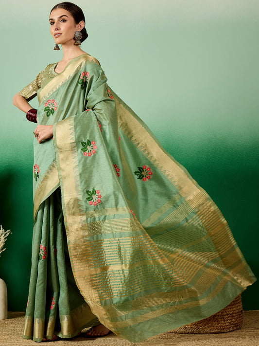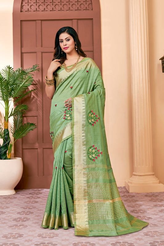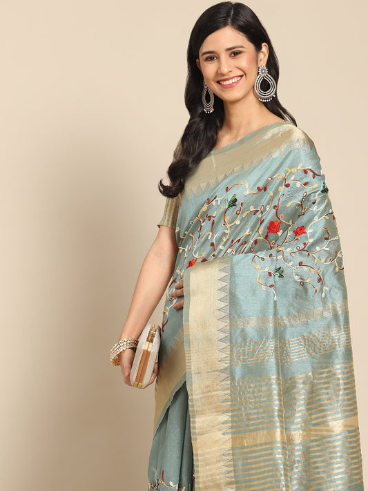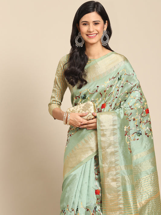 Dhiyona RV Women's Graceful Linen Cotton Saree with Elegant Thread Embroidery With Blouse ( KVD1916 )