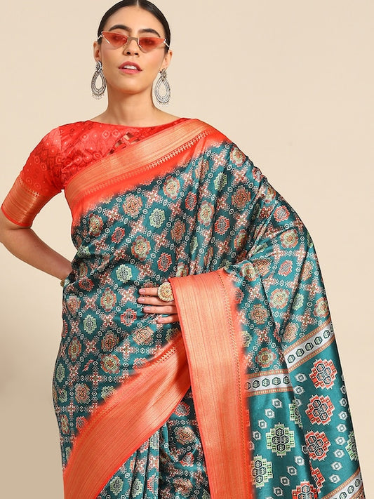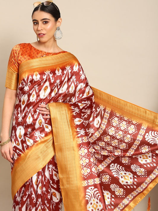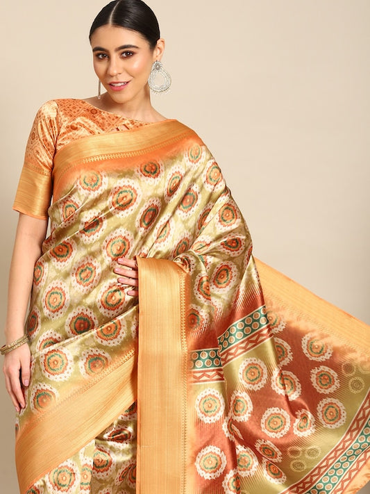 Dhiyona RV Women's Luxurious Banarasi Silk Digital Print Saree with Zari Woven Rich Pallu With Blouse ( KVD1906 )