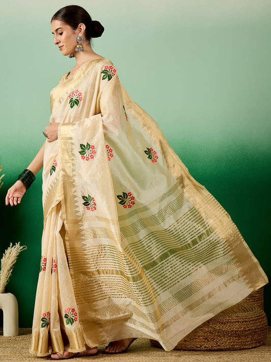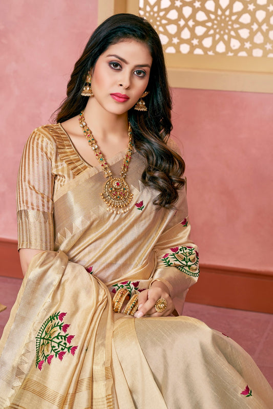 Dhiyona RV Women's Graceful Linen Cotton Saree with Elegant Thread Embroidery With Blouse ( KVD1913 )