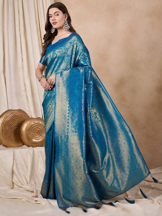 Dhiyona RV Women's Traditional Kanjivaram Silk Saree with Golden Zari Woven Border With Blouse ( KVD2141 )