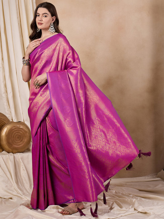 Dhiyona RV Women's Traditional Kanjivaram Silk Saree with Golden Zari Woven Border With Blouse ( KVD2142 )