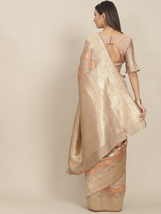 Dhiyona RV Women's Exquisite Soft Banarasi Cotton Tie-Dye Saree with Zari & Sequins Weaving With Blouse ( KVD1827 )