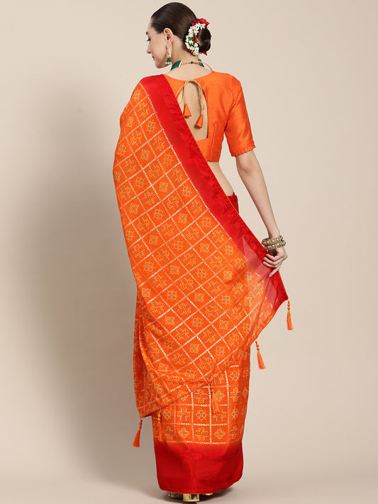 Dhiyona RV Women's Elegant Viscose Georgette Bandhani Saree With Blouse ( KVD1873 )