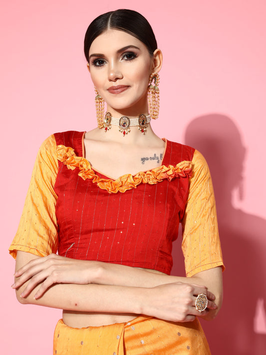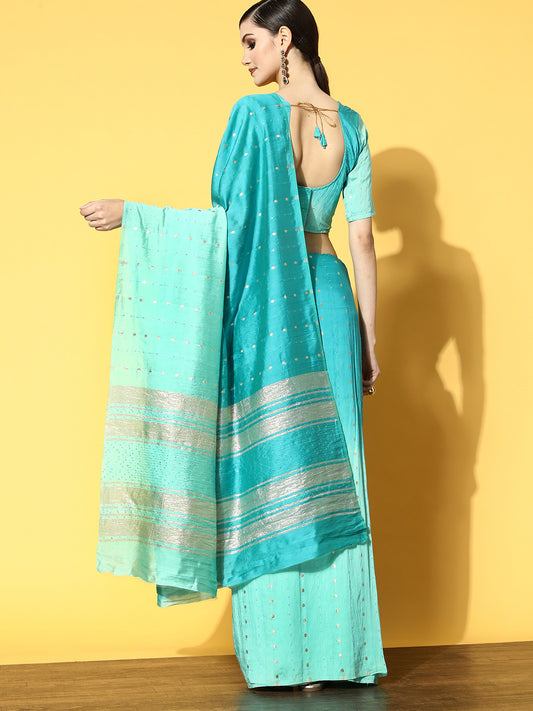 Dhiyona RV Women's Luxurious Silk Blend Saree with Satin & Zari Stripes and Sequins Blouse ( KVD1805 )