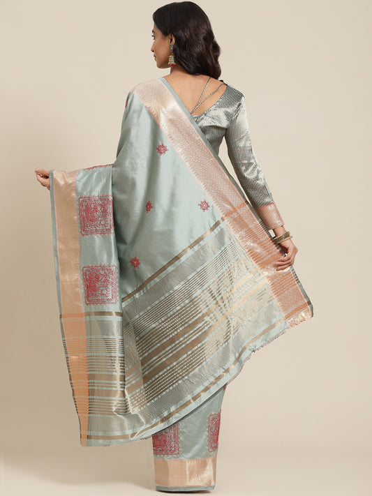 Dhiyona RV Women's Exquisite Aangi Cotton Silk Saree with Multi-Color Thread & Sequins Embroidery With Blouse ( KVD1816 )