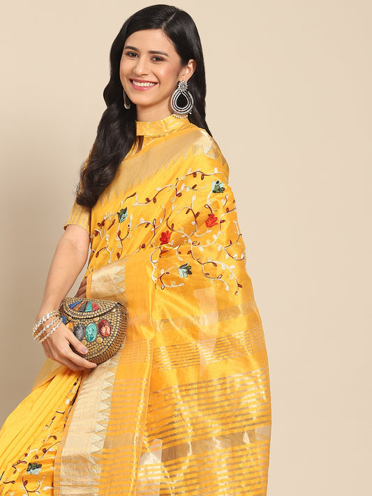 Dhiyona RV Women's Exquisite Aangi Cotton Silk Saree with Multi-Color Thread & Sequins Embroidery With Blouse ( KVD1819 )