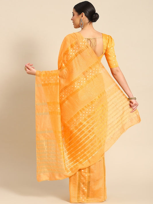 Arriva Fab Women's Elegant Soft Cotton Silk Saree with Zari Weaving & Contrast Pallu With Blouse ( KVD1854 )
