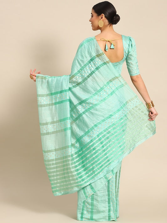 Dhiyona RV Women's Elegant Silk Blend Saree with Silver Zari Weaving Stripes With Blouse ( KVD1788 )