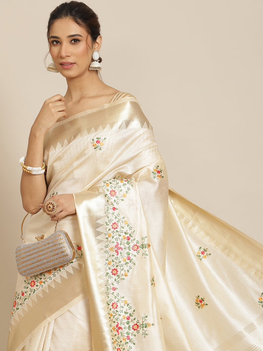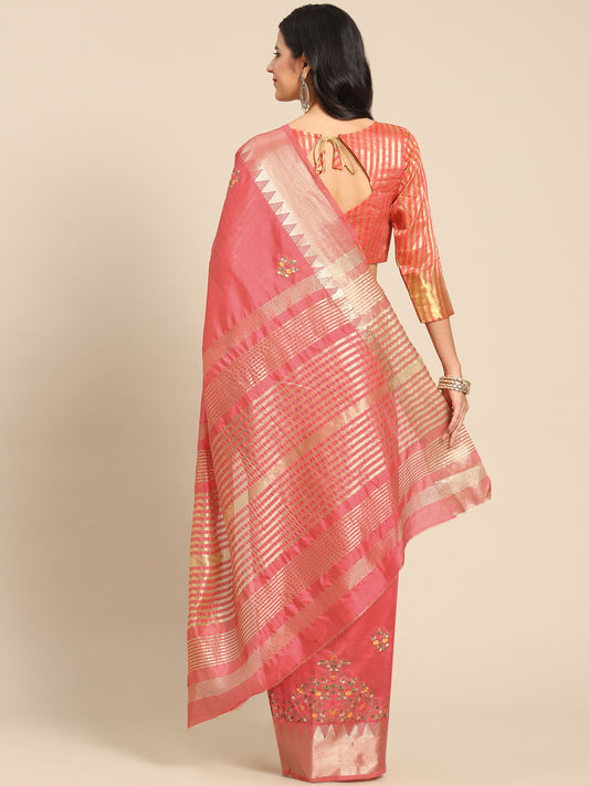 Dhiyona RV Women's Elegant Assam Cotton Silk Embroidered Saree with Temple Contrast Border ( KVD1700 )