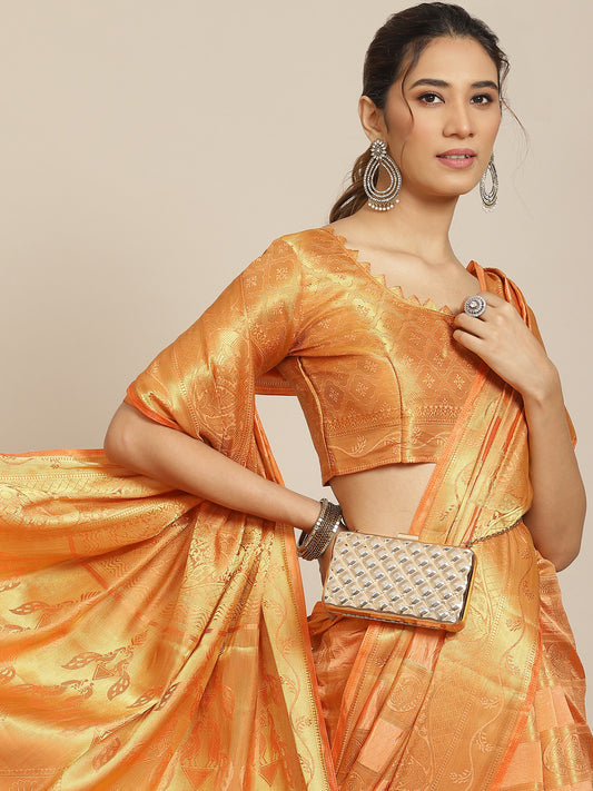 Dhiyona RV Women's Elegant Organza Golden Zari Woven Saree with Matching Blouse ( KVD2147 )