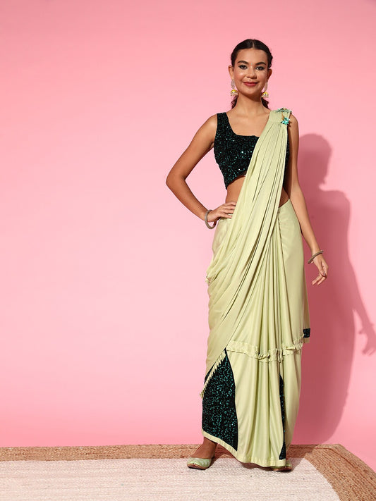 Dhiyona RV Women's Glamorous Lycra Sequins Saree with Velvet Blouse ( KVD1657 )