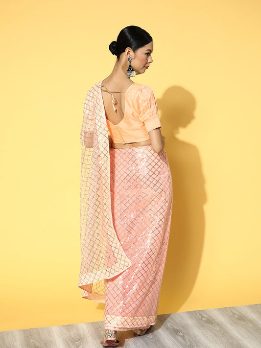 Buy 2 Get 1 FreeVendor:Dhiyona RVDhiyona RV Women's Elegant Georgette Sequins Embroidered Saree with Banglori Silk Blouse ( KVD2041 )