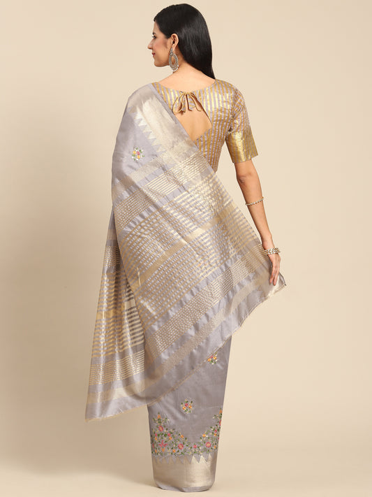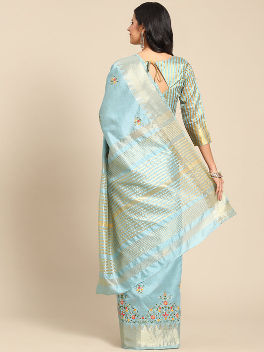 Dhiyona RV Women's Vichitra Silk With Zari Embroidered Saree With Blouse ( KVD1599 )