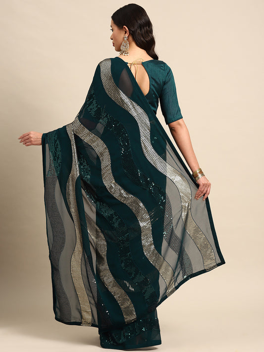 Dhiyona RV Women's Elegant Georgette Sequins Embroidered Saree with Designer Blouse ( KVD1659 )