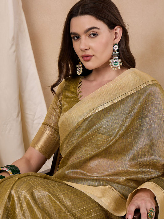 Dhiyona RV Women's Elegant Cotton Silk Linen Saree with Designer Golden Border ( KVD1747 )
