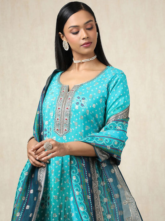 Dhiyona SO Women's Bandhani Printed Sequinned Chanderi Silk Kurta & Trousers With Dupatta