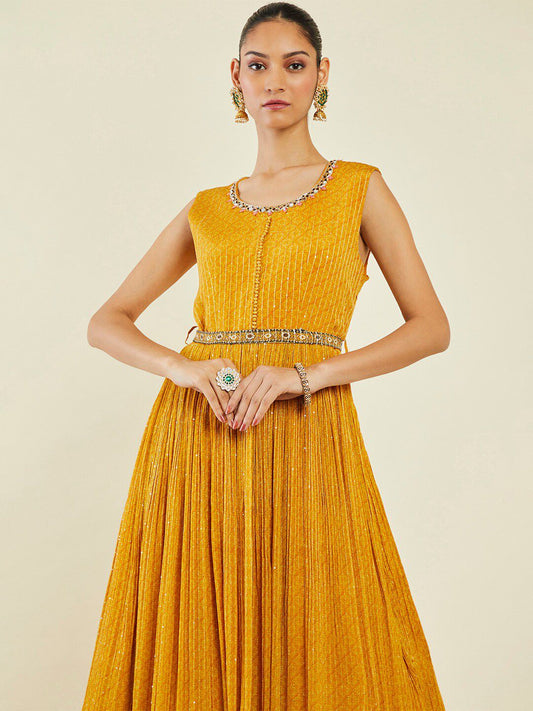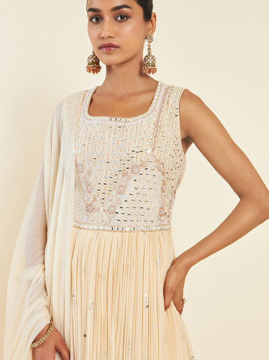 Dhiyona SO Women's Embroidered Empire Sequinned Anarkali Kurta with Churidar & Dupatta