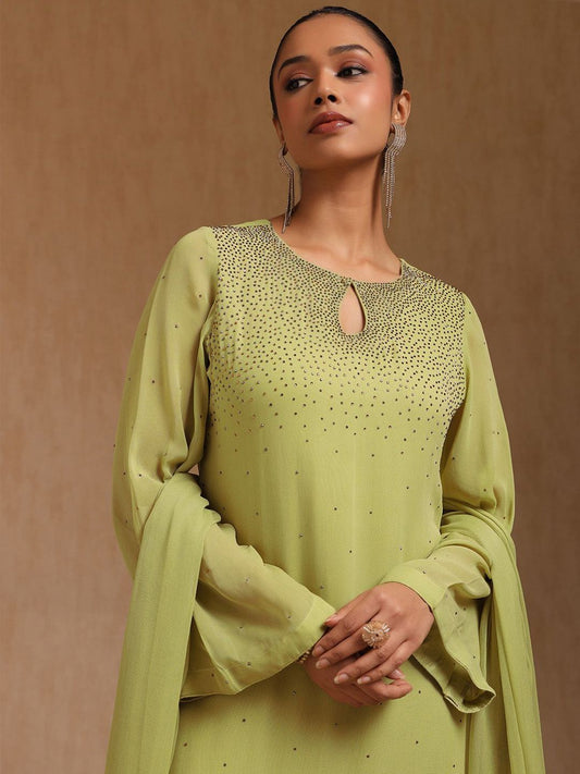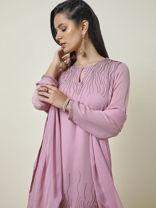 Dhiyona SO Women's Ethnic Motifs Embroidered Beads And Stones Georgette Kurta With Palazzos & Dupatta
