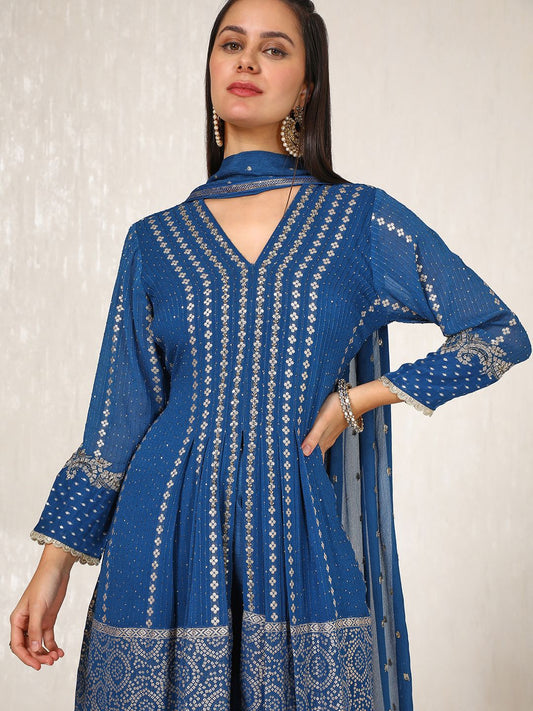 Dhiyona SO Women's Ethnic Motifs Embroidered Pleated Sequinned Anarkali Kurta with Trousers & Dupatta