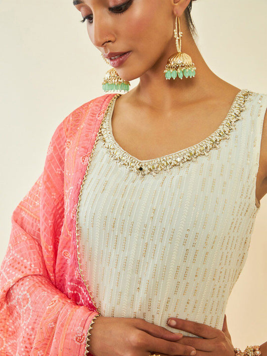 Dhiyona SO Women's Ethnic Motifs Embroidered Sequinned Georgette Kurta with Palazzos & Dupatta