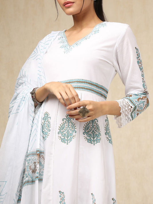 Dhiyona SO Women's Ethnic Motifs Printed Anarkali Kurta With Trousers And Dupatta