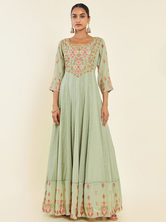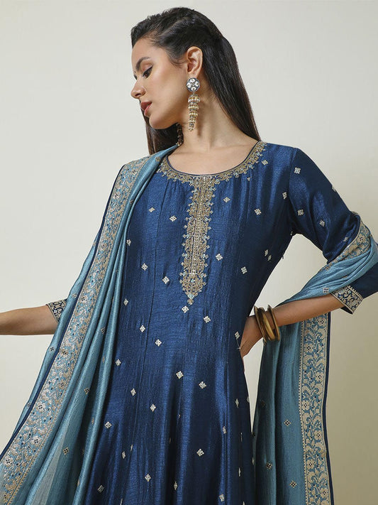 Dhiyona SO Women's Floral Embroidered Regular Sequinned Anarkali Kurta with Trousers & Dupatta