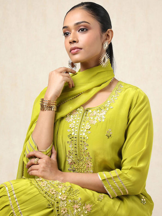 Dhiyona SO Women's Floral Embroidered Regular Gotta Patti Kurta with Trousers & Dupatta
