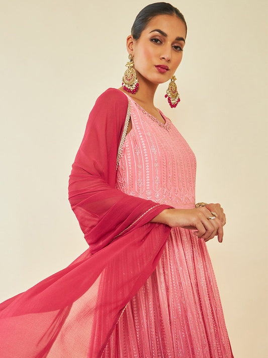 Dhiyona SO Women's Floral Embroidered Sequinned Anarkali Kurta With Trousers & Dupatta
