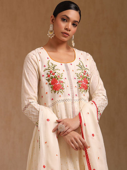 Dhiyona SO Women's Floral Embroidered Thread Work Chanderi Silk Kurta With Trousers & Dupatta