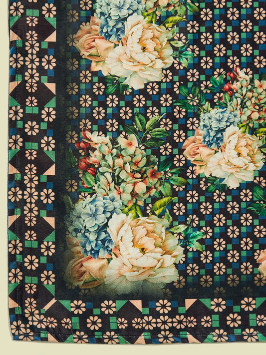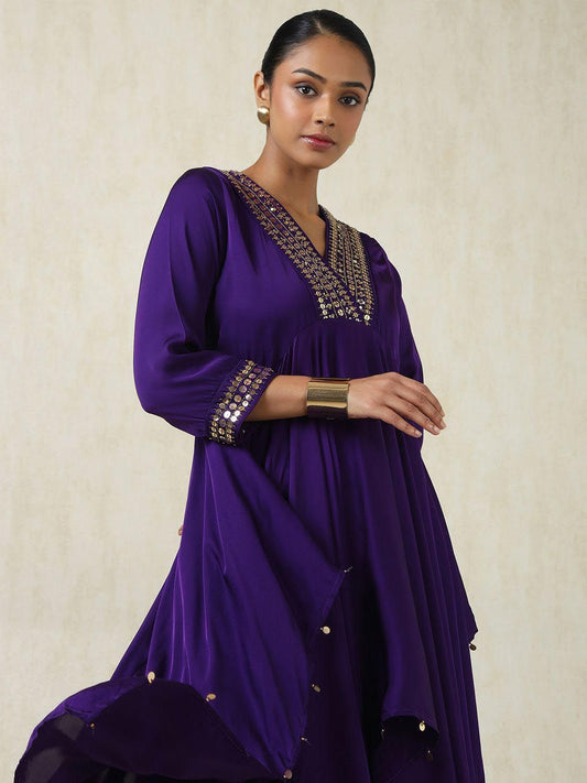 Dhiyona SO Women's Floral Yoke Design Sequinned Silk Crepe Kaftan Kurta With Trouser