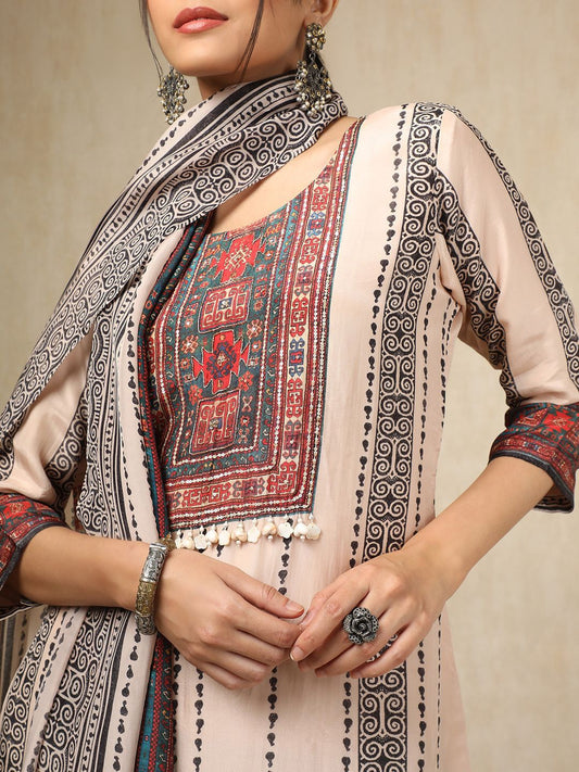Dhiyona SO Women's Printed Beads And Stones Kurta With Trousers & Dupatta