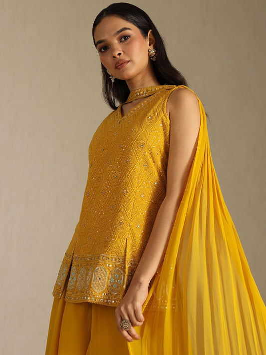 B4G1Vendor:Dhiyona SODhiyona SO Women's Women Ethnic Motifs Embroidered Regular Mirror Work Kurti & Palazzos With Dupatta
