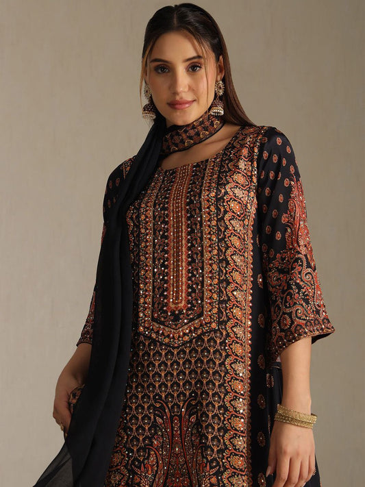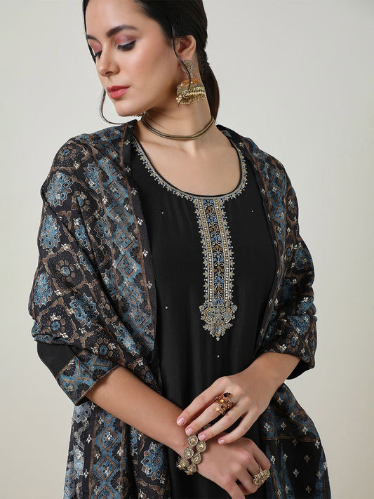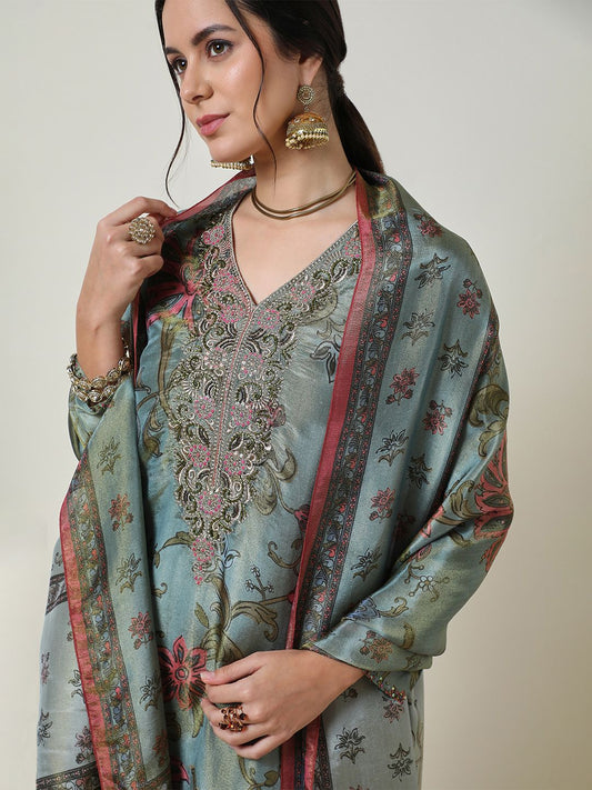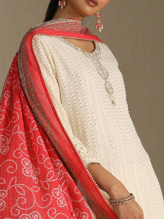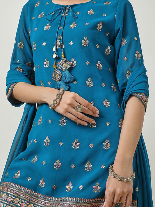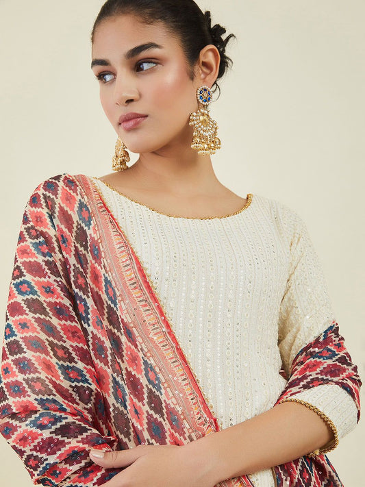 Dhiyona SO Women's Women Ethnic Motifs Embroidered Sequinned Kurta With Palazzos & Dupatta