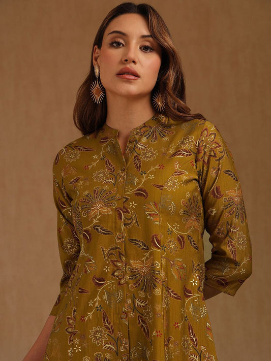 Dhiyona SO Women's Women Ethnic Motifs Printed A-Line Kurta with Trouser