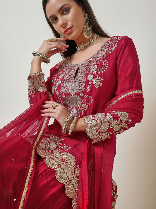Dhiyona SO Women's Women Ethnic Motifs Embroidered Kurta with Sharara & Dupatta Kurta Sets