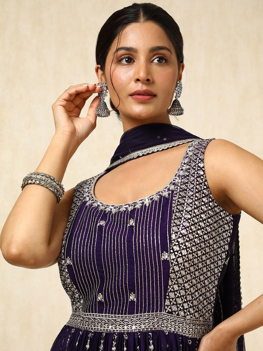 Dhiyona SO Women's Women Ethnic Motifs Embroidered Pleated Sequinned Kurta With Dupatta