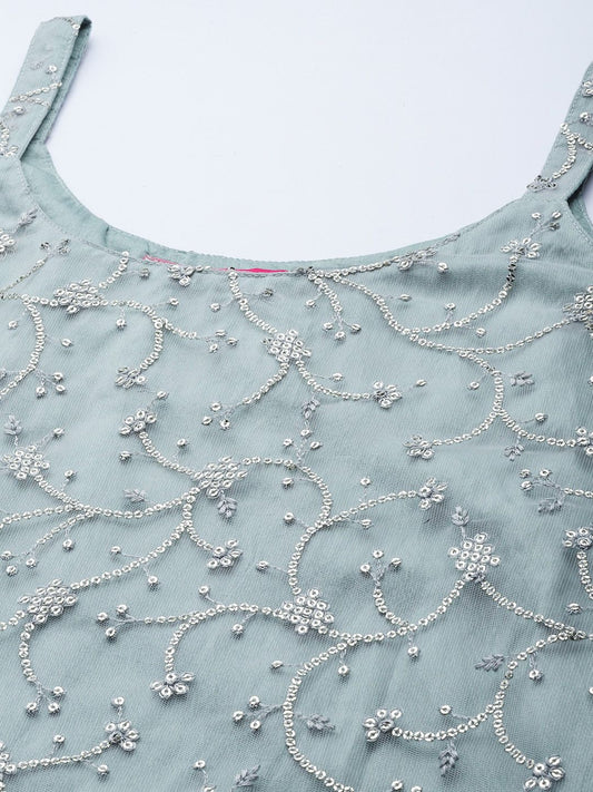 Dhiyona VA Women Green Floral Sequinned Kurta with Sharara & With Dupatta