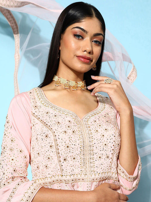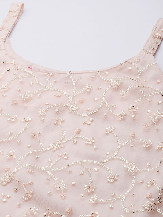 Dhiyona VA Women Peach-Coloured Floral Sequinned Kurta with Sharara & With Dupatta