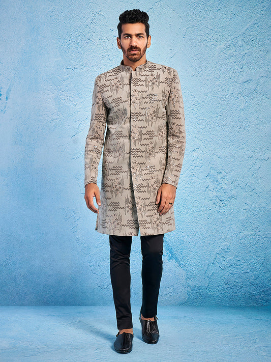 Men's Cream Silk Blend Straight Sherwani Only Top