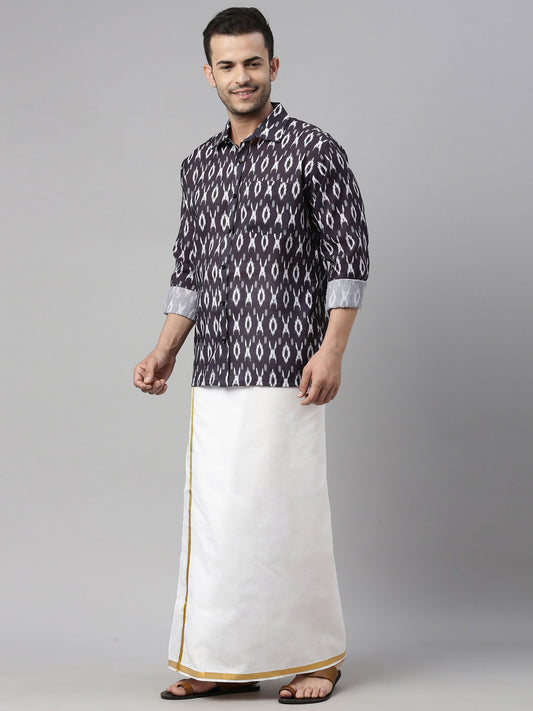 Men's Black Cotton Blend Straight Shirt And Mundu