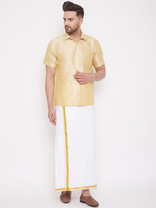 Men's Gold Silk Blend Straight Shirt And Mundu